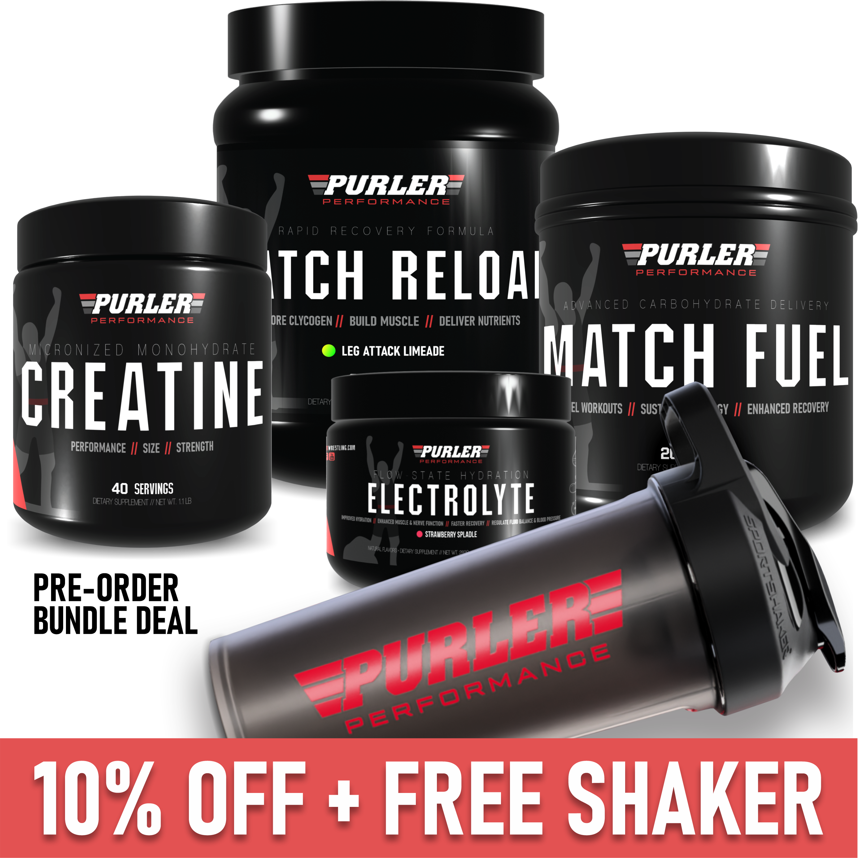Buy the Pre-Order Bundle and get 10% OFF and a FREE SHAKER. Bundle includes one flavor of MATCH RELOAD, one flavor of ELECTROLYTES, CREATINE & MATCH FUEL.